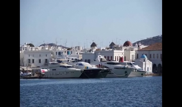 미코노스(Mykonos)의 밤. 그리스(Greece) Mykonos Ferry Port