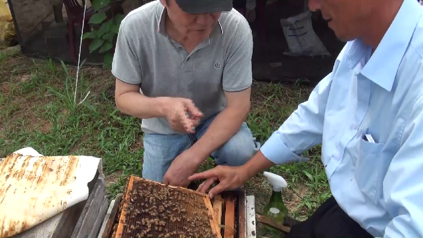 7월13일 오전촬영 소문을 열고 은용액으로 뿌리면 벌이 위로 올라가 소비가 보인다 건강한 벌은 소비가 백옥같이 하얗다 약 10km 떨어져 있는 3개 마을에서 낭충봉아부패병이 퍼지기시작 3년동안 잘키우던 벌이 전멸하였다 6월 26일 오전 11시촬영 소비에 붙어있는 벌만 보고 알수가 없으나 ..