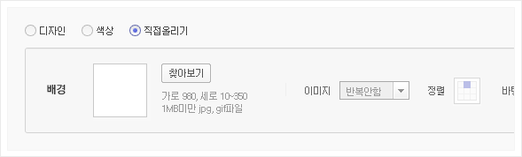 직접꾸미기 > 배경 에서는 블로그 화면 전체 배경의 디자인을 꾸밀 수 있습니다.