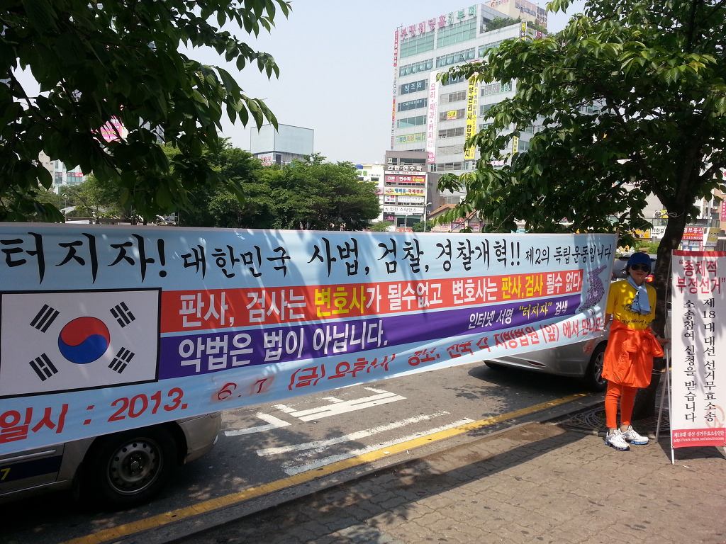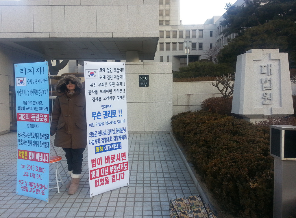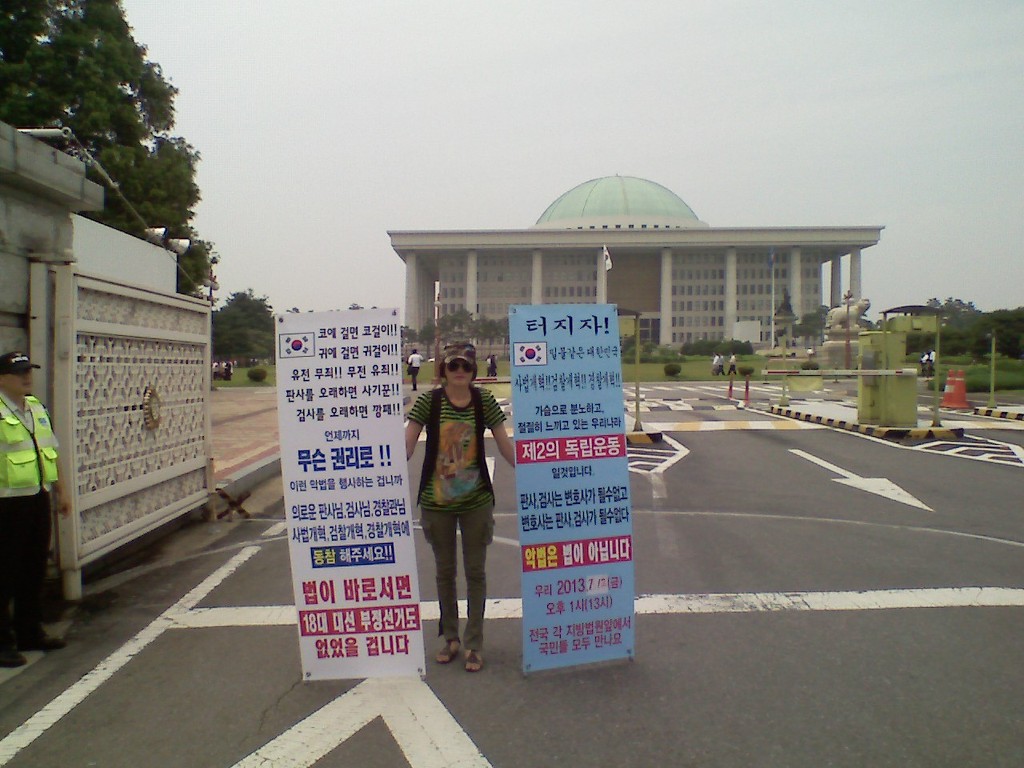 저는 현재 매일 인천지방법원에서 1인 시위하고 있습니다