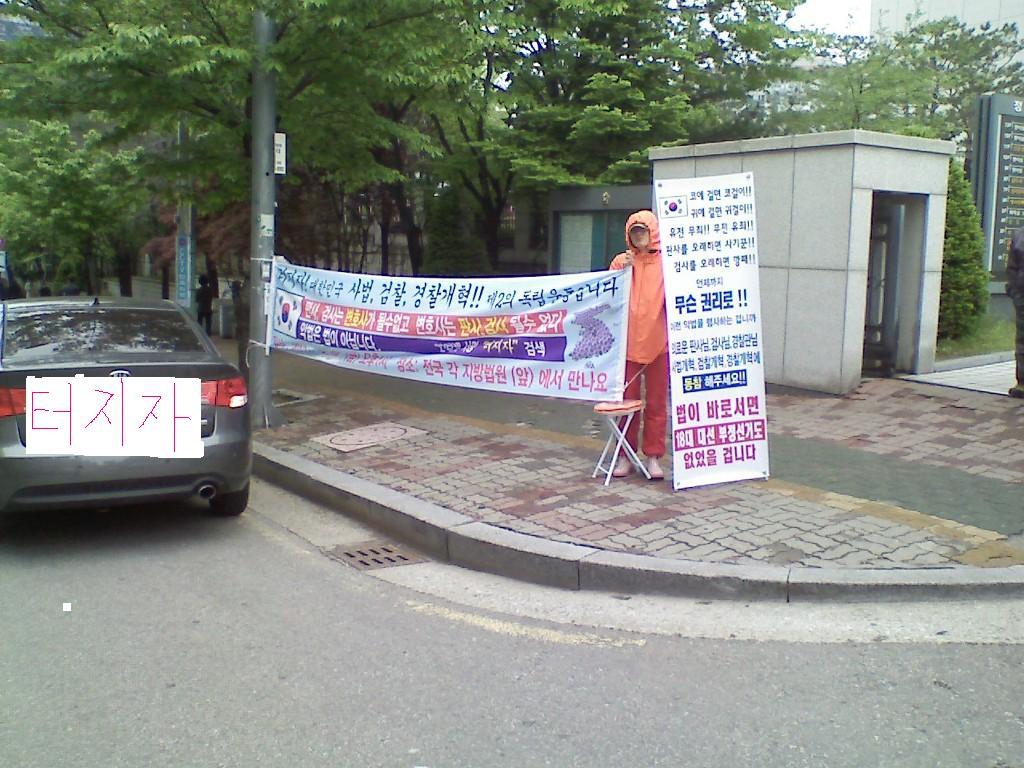 판사님들 출근 하시기전 인천에서 새벽 5:30쯤 출발~~ 7시 50분쯤 도착~~ 오전 11시 30분까지 시위.