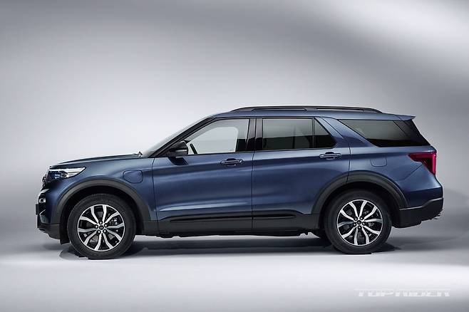 신형 익스플로러의 새로운 플랫폼은 개발 초기부터 전동화 파워트레인이 고려됐다. 때문에 대용량 배터리팩에도 적재공간이 유지됐다. 신형 익스플로러의 신규 플랫폼은 기존 전륜구동 기반에서 후륜구동 기반으로 변경돼 짧은 전방 오버행과 함께 프로포션이 개선됐다.![]()