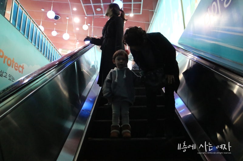 요즘 아주 사진찍으려고 하면 애교폭발. 에스컬레이터 타고 아래로 아래로 :)