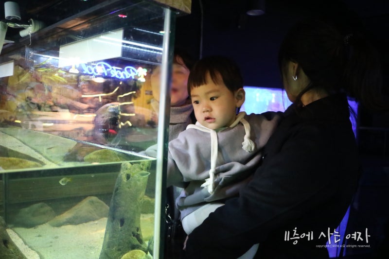 커다란 수족관에 신이난 쪼선생.