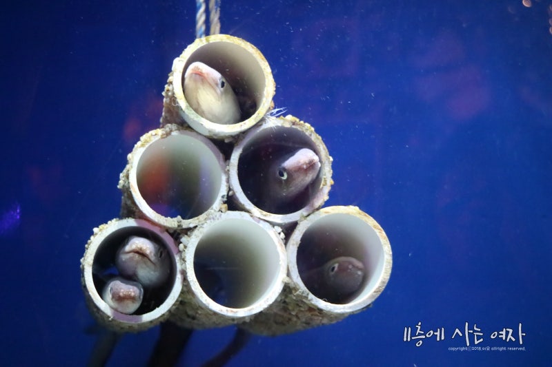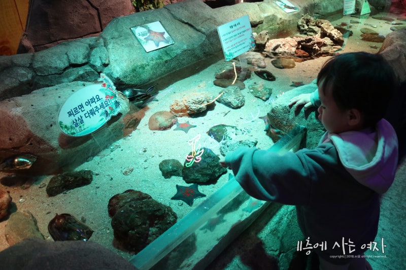 윗층의 불가사리를 만질 수 있던 곳 바로 뒤가 이 수족관의 윗부분을 볼 수 있는 곳이다.