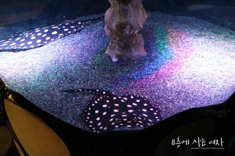 부산 해운대 아쿠아리움 안에서 유일하게 밝은곳들은 전부 이렇게 테마로 꾸며져 있는 곳이었다. 주인공 가오리가 정말 예쁘더라 ㅠㅠ
