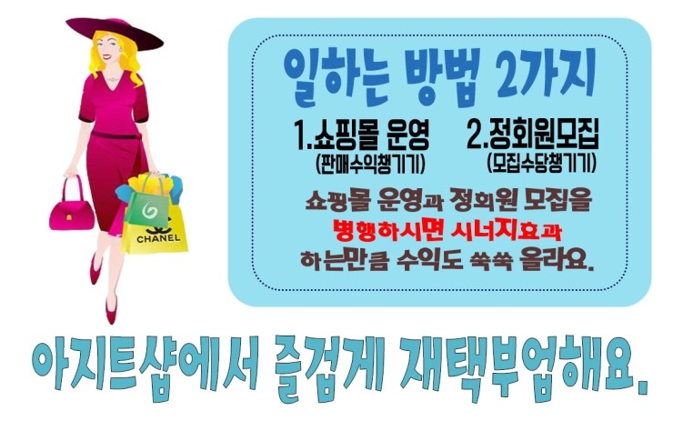 아~ 하는 일은 쇼핑몰 운영과 정회원 모집이니