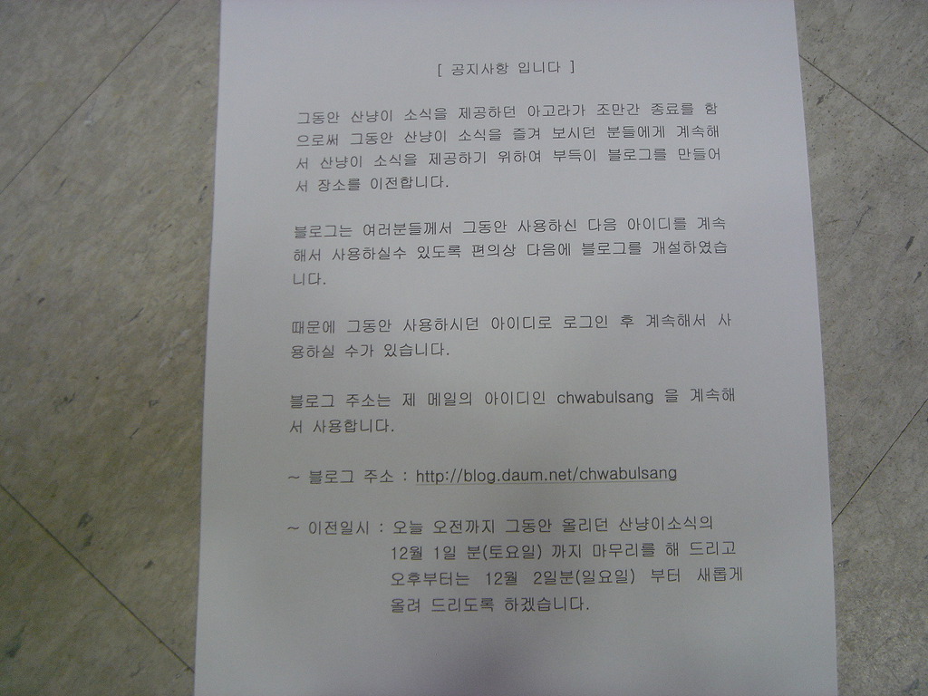 이것으로 아고라에 올렸던 (구) 산냥이 소식을 종료합니다.