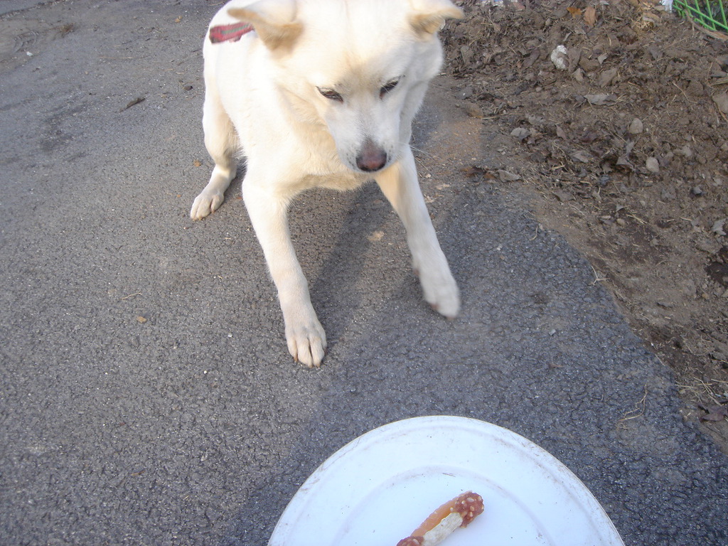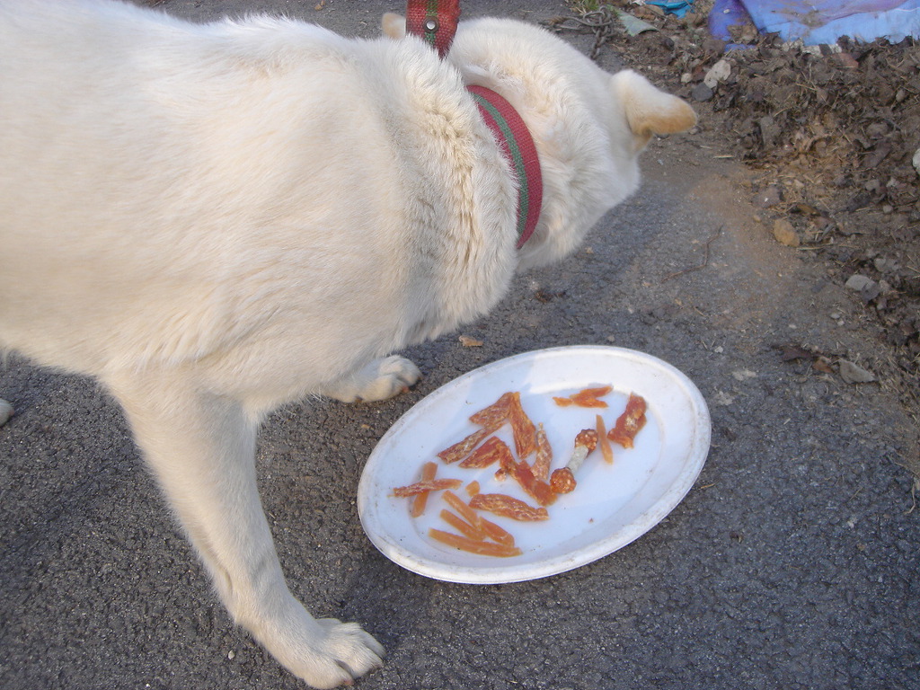 그리고 백구한테 다시오니 밥을 좀 남기네요.